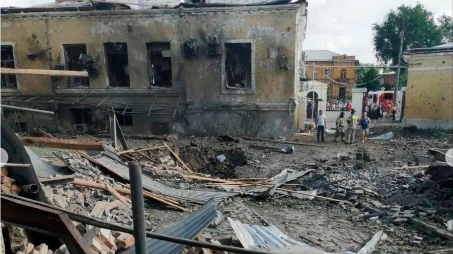 Videos shared on social media showed a ruined building and rubble scattered in the yard of Taganrog’s art museum, as well as a damaged café named after the playwright Anton Chekhov, who was born in the city. The strike gouged a deep crater in the museum yard and windows were blown out in a nearby apartment block.