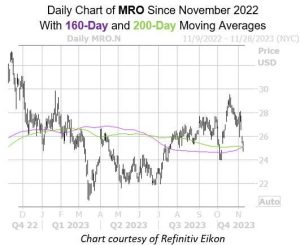 Marathon Oil Corp (MRO) is down 2.5% at $24.90 at last glance, headed for its fourth-straight daily loss. The shares…