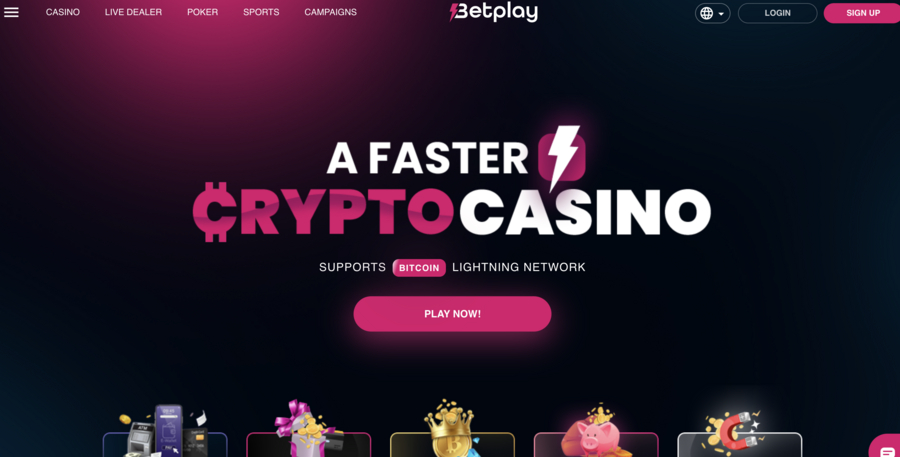 - Betplay.io – Features a wide range of games and a sportsbook. A 100% deposit match bonus of up to 5 BTC is available, making transactions seamless through the Bitcoin Lightning Network.
