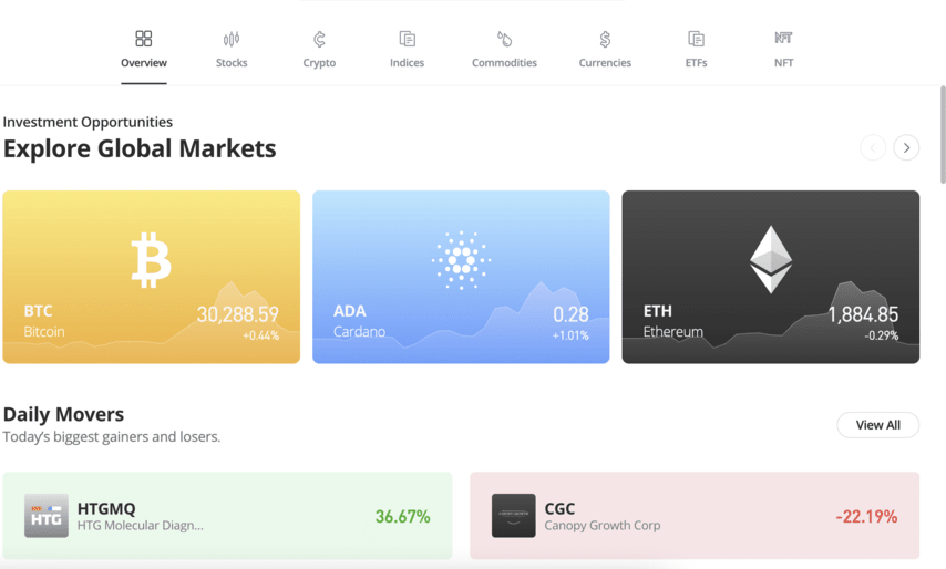 But eToro does not connect to Web3 interfaces – you need a Web3 wallet for this to happen.