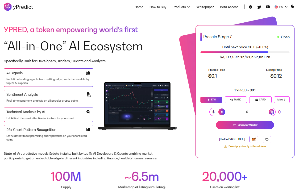yPredict is best known for its plans to build a best-in-class AI-powered crypto price prediction and analytics platform.