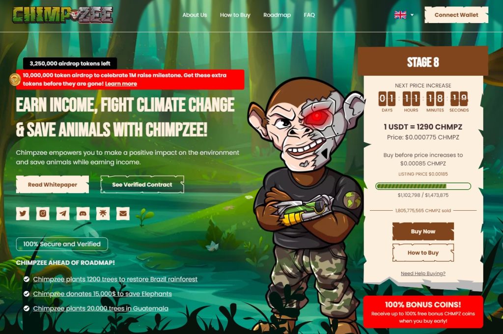Thursday, 3rd of August – One of Web3’s most promising up-and-coming charity-focused projects, Chimpzee, is celebrating that it just hit $1 million in funds raised with a massive token airdrop.