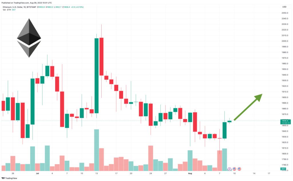 This is massively bullish for Ethereum, with ETH likely to reach $1,900 in the next few weeks, before potentially seeing out the year at around $2,500.