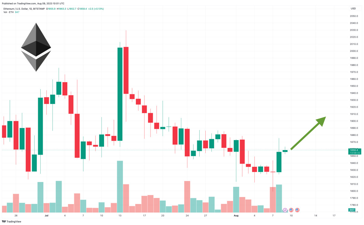 After several weeks of declines, ETH’s chart and technical indicators have finally picked up some momentum, and are in a position where they could continue to rise in the shorter term.