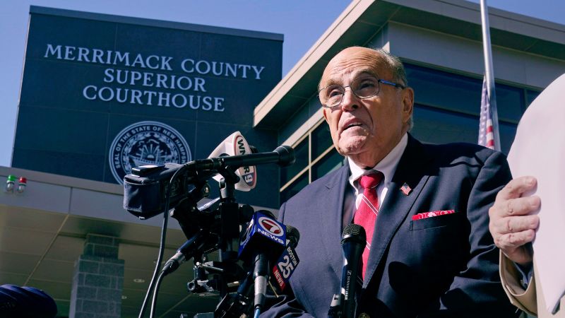 Giuliani announced the lawsuit at a rambling and sparsely attended news conference outside a courthouse in New Hampshire, where he filed to take advantage of the state’s defamation laws.